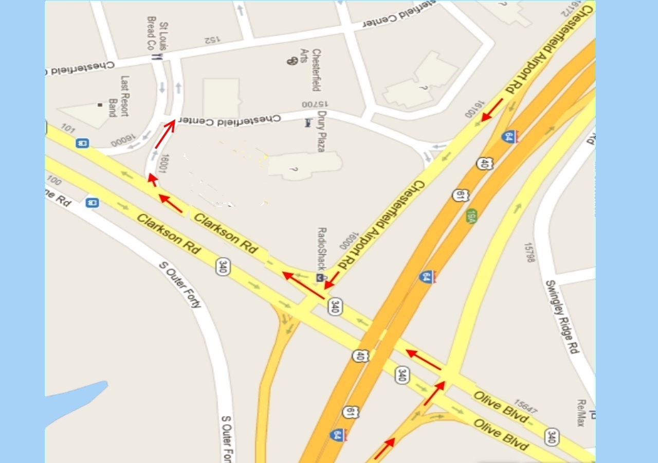 Map View of Clarkson Road at I-64 using Exit 19B